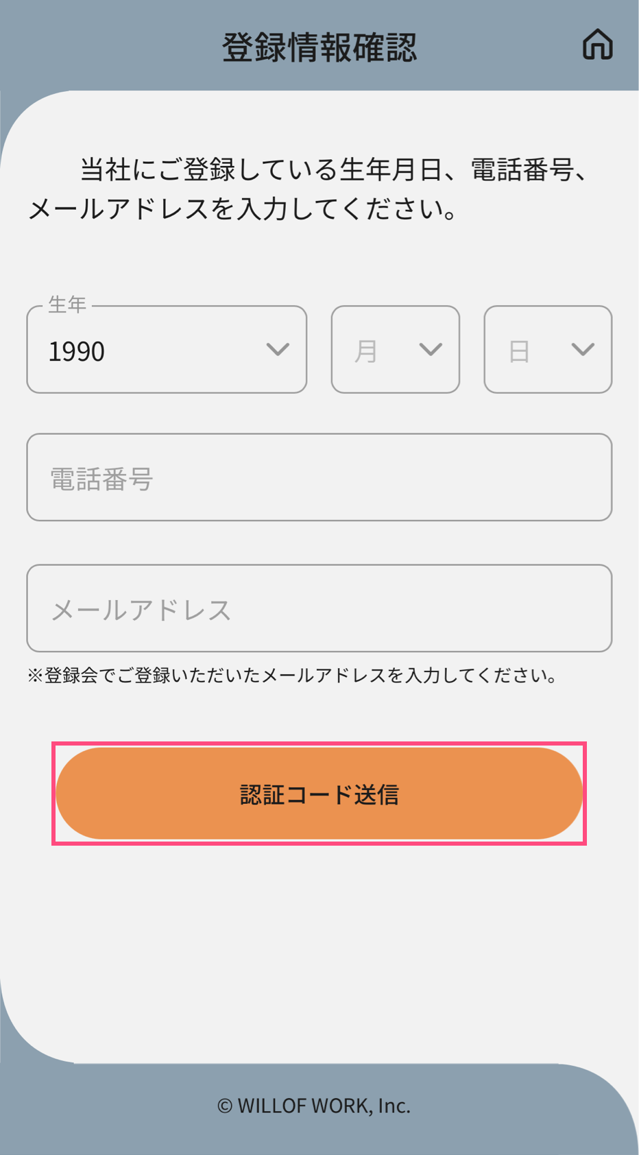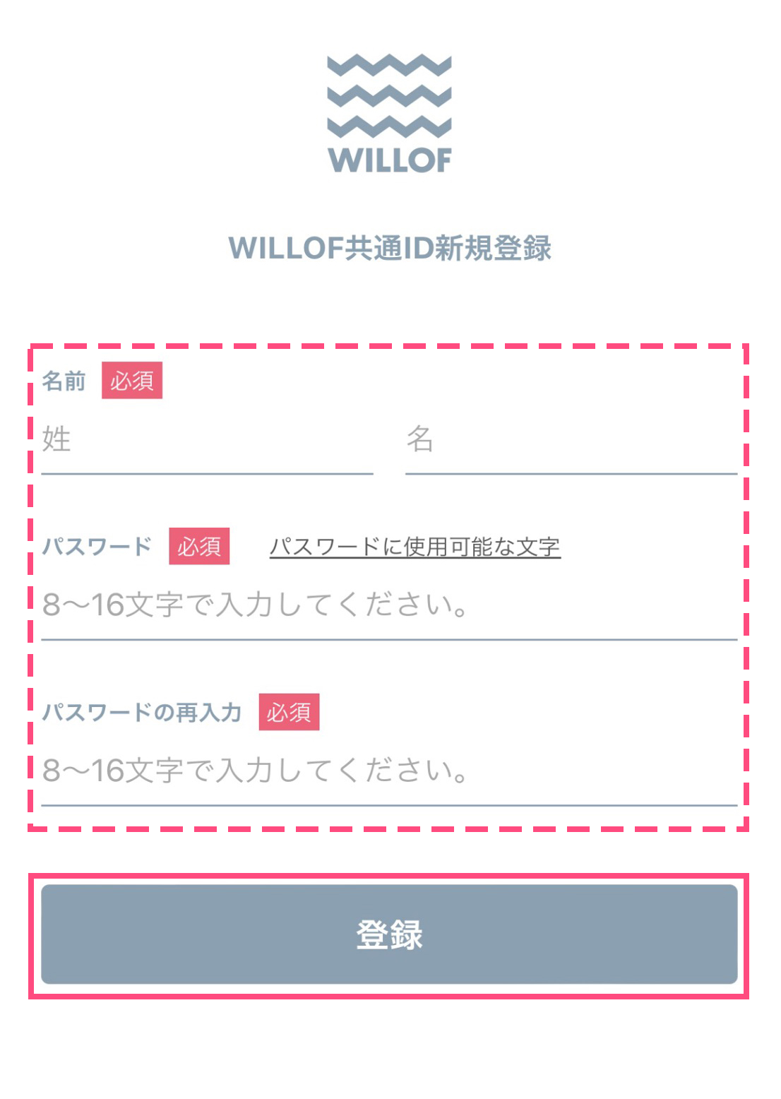 5. WILLOF共通ID情報を入力し「登録」を選択