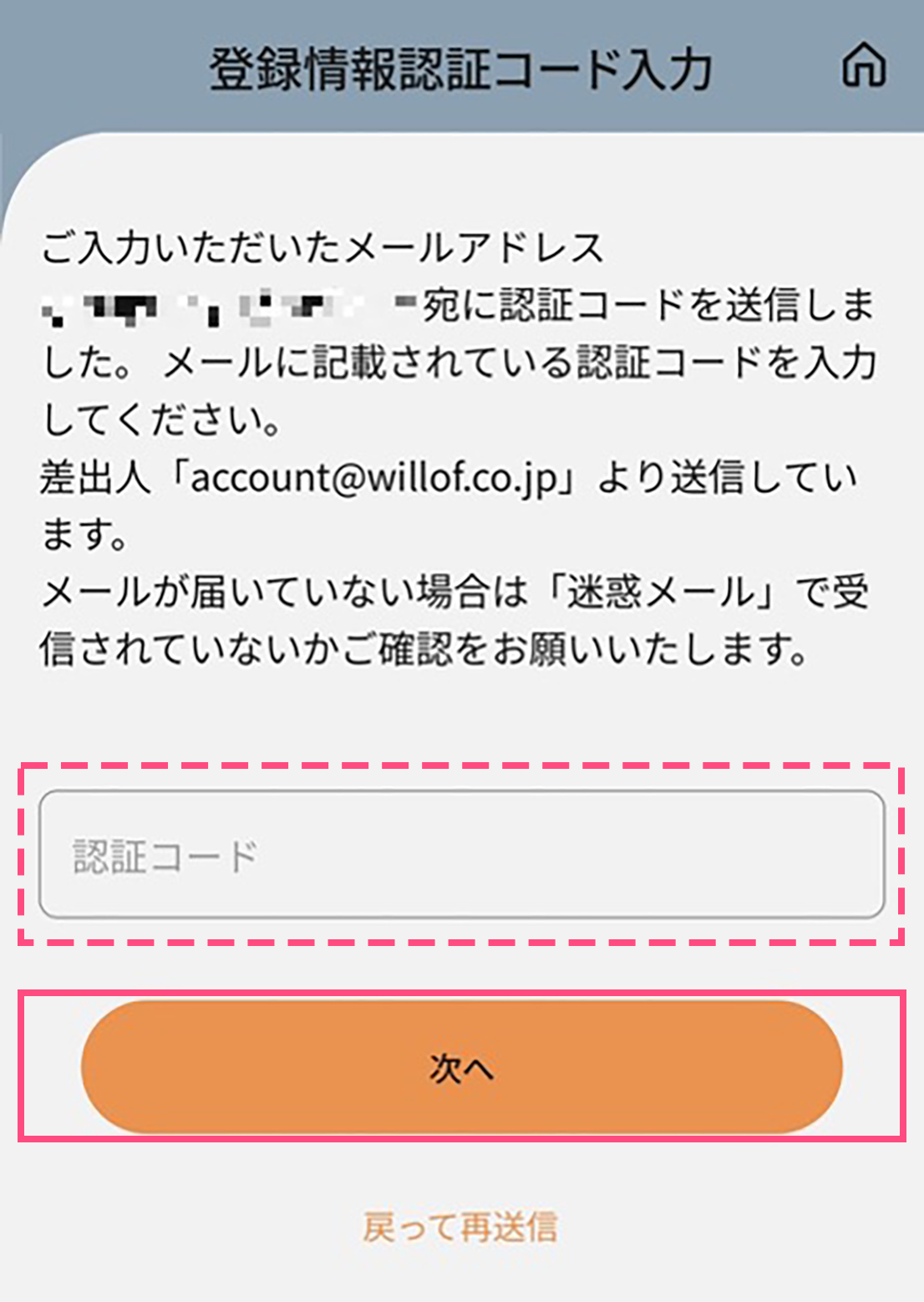 9. 登録情報を入力し、認証コードを再受信